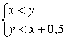 , из которых первое означает, что Петя пришел позже Васи, а второе, — что ждать Вася будет не более получаса. Множество точек внутри единичного квадрата, удовлетворяющее этим условиям, есть нижняя заштрихованная трапеция.