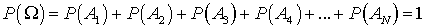 . Убедимся в справедливости данного утверждения. Пусть все элементарные события равновозможны (равновероятны), а общее число элементарных событий равно . По второй аксиоме вероятность появления ходя бы одного из элементарных событий равна 1, или