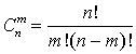 возможных размещений m элементов из n. Размещений, различающихся порядком следования элементов при заданном их составе, — m!, то есть на одно сочетание приходится m! размещений. Следовательно, количество сочетаний есть: