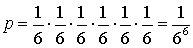 . Доказательство. Следует из определения независимых событий и теоремы умножения.Пример 12.3Какова вероятность, что, бросая кубик 6 раз, мы получим последовательность чисел 1, 2, 3, 4, 5, 6?Результат бросания кубика не зависит от предыдущих результатов бросания. По формуле для вероятности произведения независимых событий искомая вероятность равна