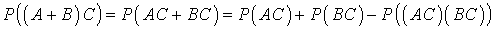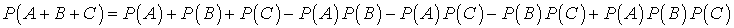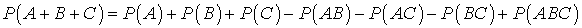 . Действительно, произведение двух событий — это событие, заключающееся в том, что произошли оба эти события, произведение трех событий — это событие, заключающееся в том, что произошли все три события и так далее. И соответственно, возникающее произведение событий CC есть не что иное как событие C. В итоге мы имеем следующую формулу для суммы трех совместных событий: