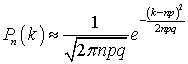 ). Если вероятность удачи p в одном из n независимых испытаний с двумя исходами постоянна и отлична от нуля и единицы, то вероятность появления ровно k удач приближенно равна (тем точнее, чем больше n):