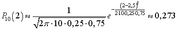 .Пример 21.1Тест состоит из 10-ти вопросов, по 4 варианта ответа на каждый вопрос. Один ответ — верный, остальные — нет. Какова вероятность случайно ответить верно ровно на 2 вопроса?По формуле Бернулли, как было рассмотрено нами в кванте 20, вероятность равна