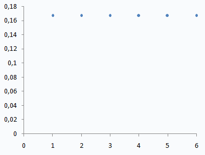 , где k — нумерует различные грани 1, 2, 3, 4, 5, 6.Закон распределения в табличном виде: