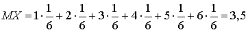. Пример 26.2Найти математическое ожидание случайной величины — числа выпавших очков при подбрасывании игрального кубика.В 25 кванте нами был получен закон распределения заданной случайной величины: вероятности каждого из возможных значений 1, 2, 3, 4, 5, 6 равны 1/6. По определению математического ожидания вычисляем: