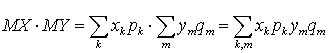 есть сумма вероятностей того, что случайная величина Y примет значение ym, а при этом случайная величина X имеет значение xk. Все эти события несовместны, значит,