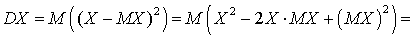 . Замечание 1. Величина X — случайная, а дисперсия DX, так же, как и математическое ожидание MX, имеет для данного закона распределения вполне определенное значение.Замечание 2. Для закона распределения случайной величины дисперсию можно записать как