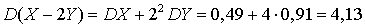 для независимых случайных величин, заданных в предыдущей задаче.Используя свойства математического ожидания и дисперсии, а также найденные в предыдущей задаче значения, получаем: