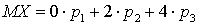 . Пример 28.3Известно, что некоторая случайная величина может принимать значения 0, 2 и 4. Известно, что математическое ожидание равно 2, а дисперсия — 0,8. Найти закон распределения случайной величины.Обозначим вероятности, стоящие в законе распределения, следующим образом: