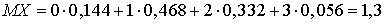 . Вероятность того, что ровно два устройства выйдут из строя, можно посчитать по формуле, аналогичной p3, а можно и из условия, что сумма всех вероятностей равна единице. В обоих случаях получим p2 = 0,332. Таким образом, имеем закон распределения: