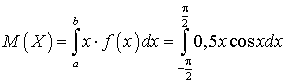 Пример 35.4Вычислить математическое ожидание, дисперсию и среднеквадратичное отклонение случайной величины, плотность распределения вероятностей которой имеет вид: