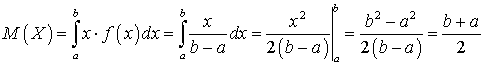 .Математическое ожидание для равномерно распределенной случайной величины может быть вычичлено по формуле (квант 34)