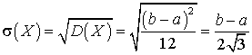 .Среднеквадратичное отклонение равномерно распределенной случайной величины может быть вычиcлено по формуле (квант 35):