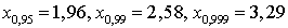 ), из соотношения 2 Ф (x) = γ определяют x. В частности, для γ, равных 0,95, 0,99 и 0,999, имеем: