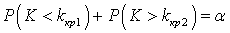 .Это означает, что вероятность того, что значение критерия будет больше, чем kкр , равно вероятности отвергнуть нулевую гипотезу.Для левосторонней критической области