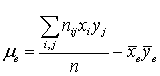 , определяющая соответствие между парой значений случайных величин (xi, yj) и относительной частотой появления этой комбинации в выборке nij, при этом: